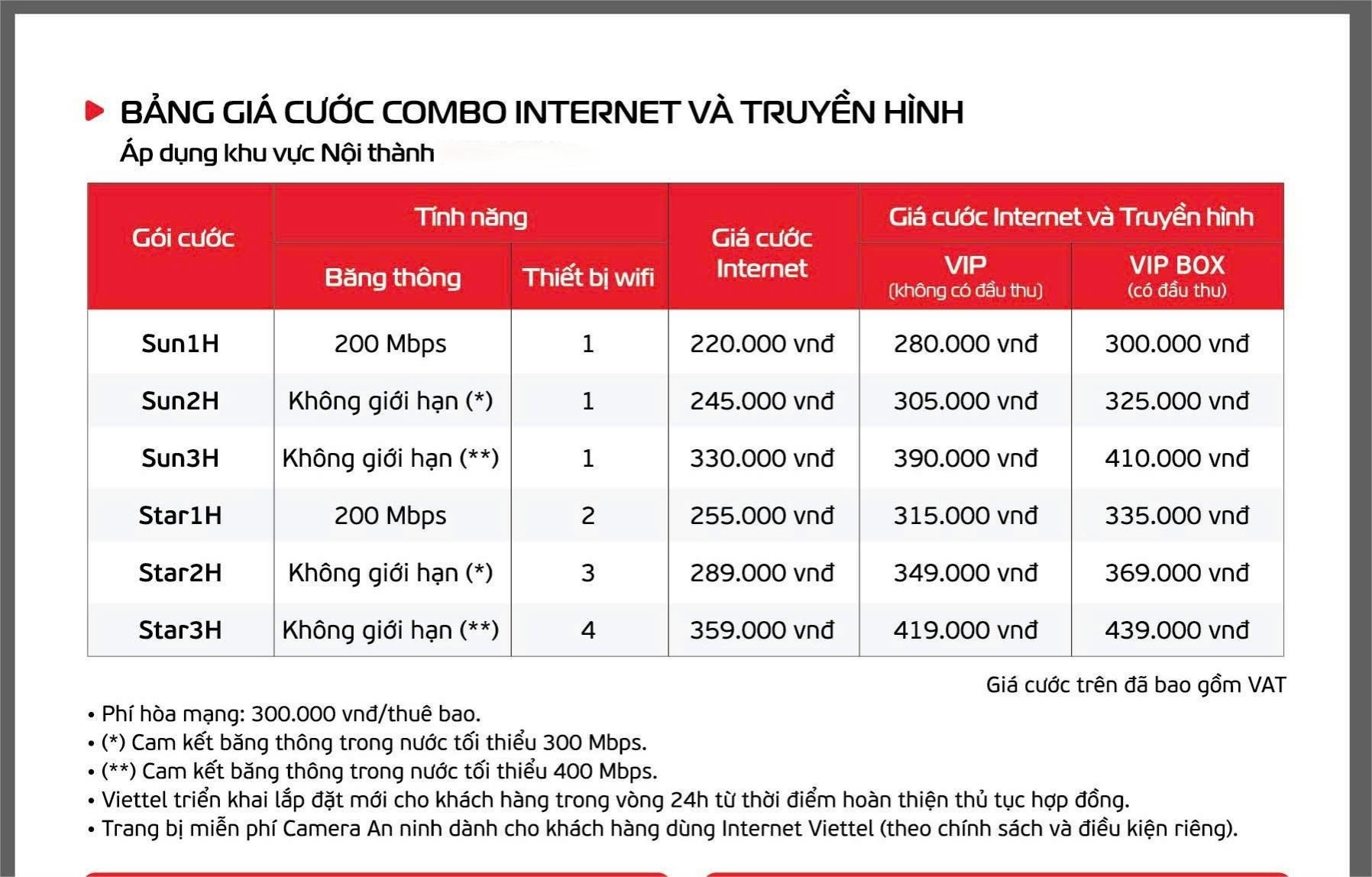 Bảng Giá Cước Lắp Internet Viettel Hà Nội (Ngoại Thành)